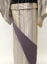 グレーともピンクともつかないニュアンスの色のグラデーションが、なんとも上品です。可愛らしすぎるピンクが苦手な方にも着用していただきやすい着物です。