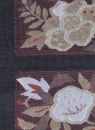 濃いグレー地に落ち着いた花の柄で、全体的にシックな印象を受ける帯です。