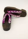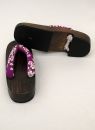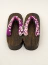 濃い目の紫地に可憐な桜柄が映える下駄です。