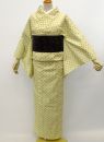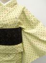 黄色地に黄緑の水玉の中に、オレンジの水玉がアクセントになっています。