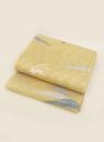 薄黄色と薄ベージュの間の色めの生地に、月とうさぎが織り込まれています。ところどころにラメ糸を使用しており、キラキラしている部分がポイントになります。