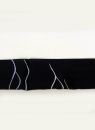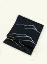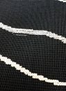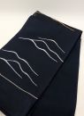 黒に近い錆鉄紺の生地にさまざまな色の糸やラメ糸を使用した、抽象的な線模様が入っています。